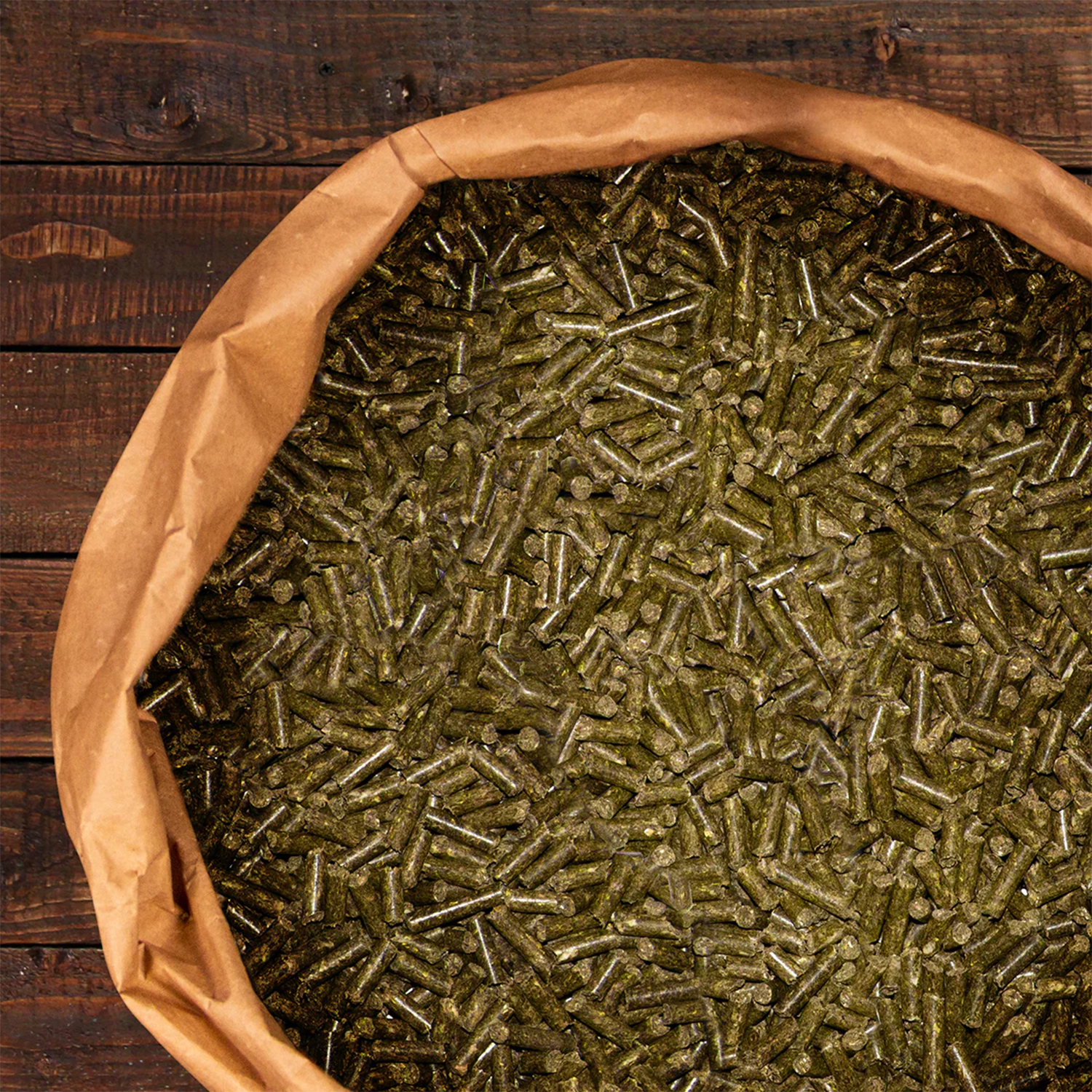 Luzernegrünmehl, Haferschälkleie, Weizengrießkleie, Gerste, Melasseschnitzel, Zuckerrüben-Melasse, Calciumcarbonat, Natriumchlorid, Monocalciumphosphat sowie Pflanzenöle und Pflanzenfettsäuren