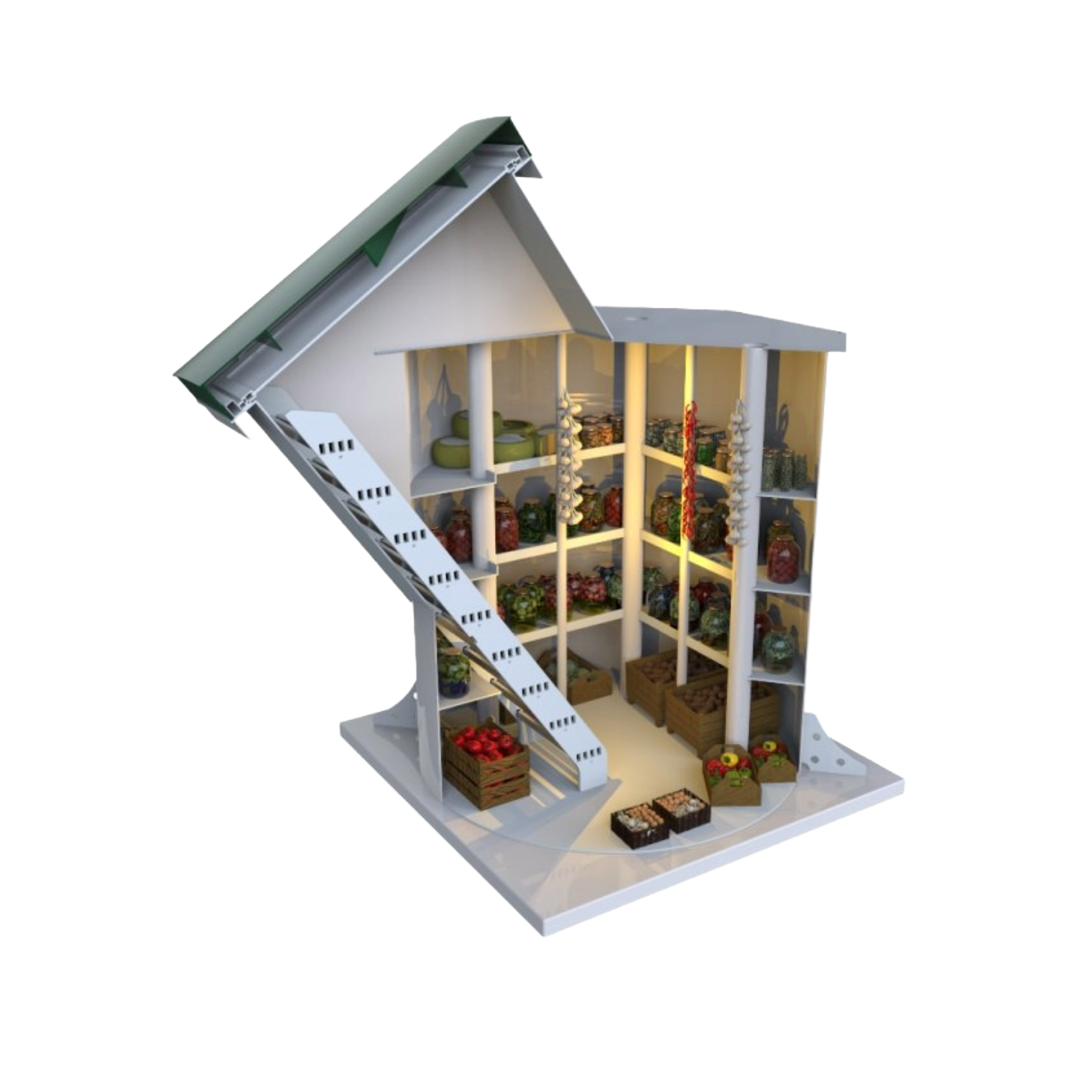 Bequeme Treppen ermöglichen einen einfachen Zugang zum Keller, selbst mit vollen Händen, und mit einer Gesamtfläche von 4,8 m3 bietet er genug Platz für eine Familie mit 5-6 Personen, was es zur perfekten Ergänzung für Ihr Zuhause macht.