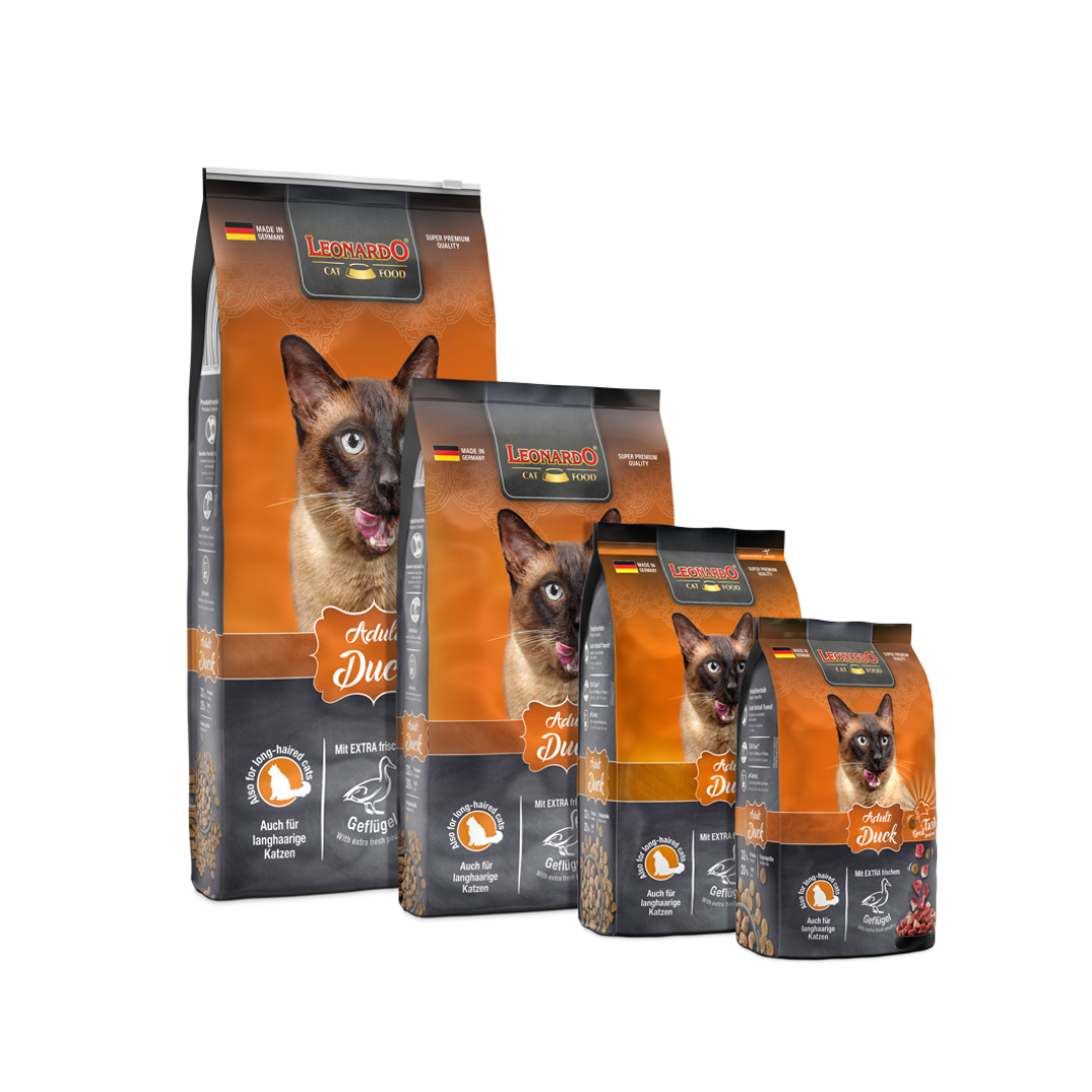 Frisches Geflügelfleisch 30 %, Entenprotein (getrocknet) 18 %, Reis, Geflügelprotein (aschearm, getrocknet) 10 %, Kartoffelstärke, Geflügelfett, Geflügelleber (hydrolisiert), Roggen (gemälzt), Ei (getrocknet), Fischmehl aus Meeresfischen 2,5 %, Meeres-Zooplankton (Krill) gemahlen) 2,5 %, Bierhefe (inaktiviert, getrocknet), Traubenkernexpeller 1,5 %, Chiasaat 1,3 %, Johannisbrotschrot (getrocknet), Guarkernmehl, Natriumchlorid, Kaliumchlorid, Chicoree Inulin